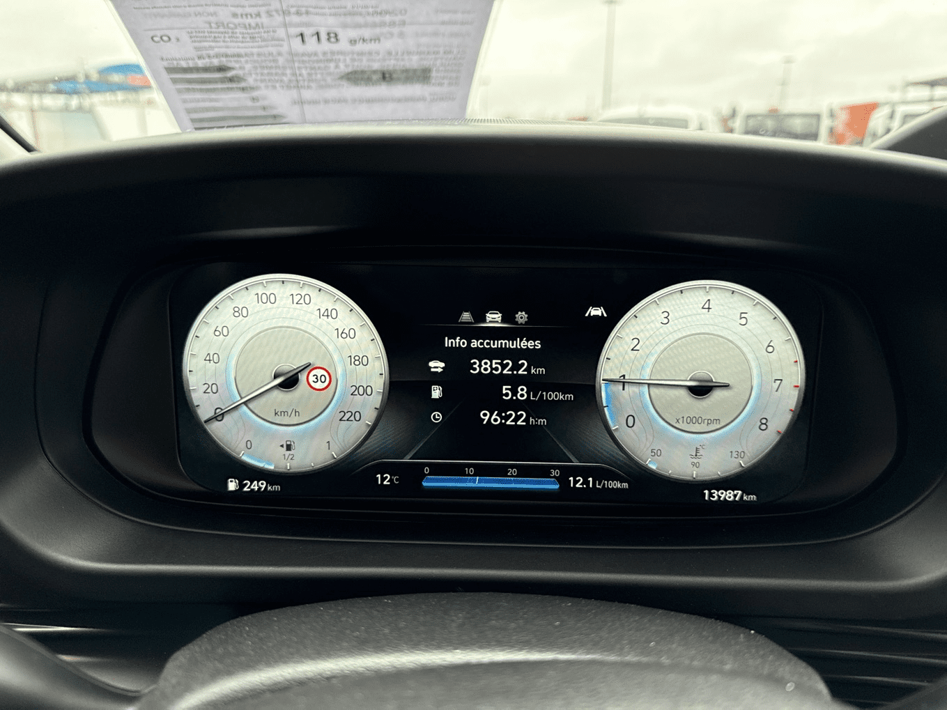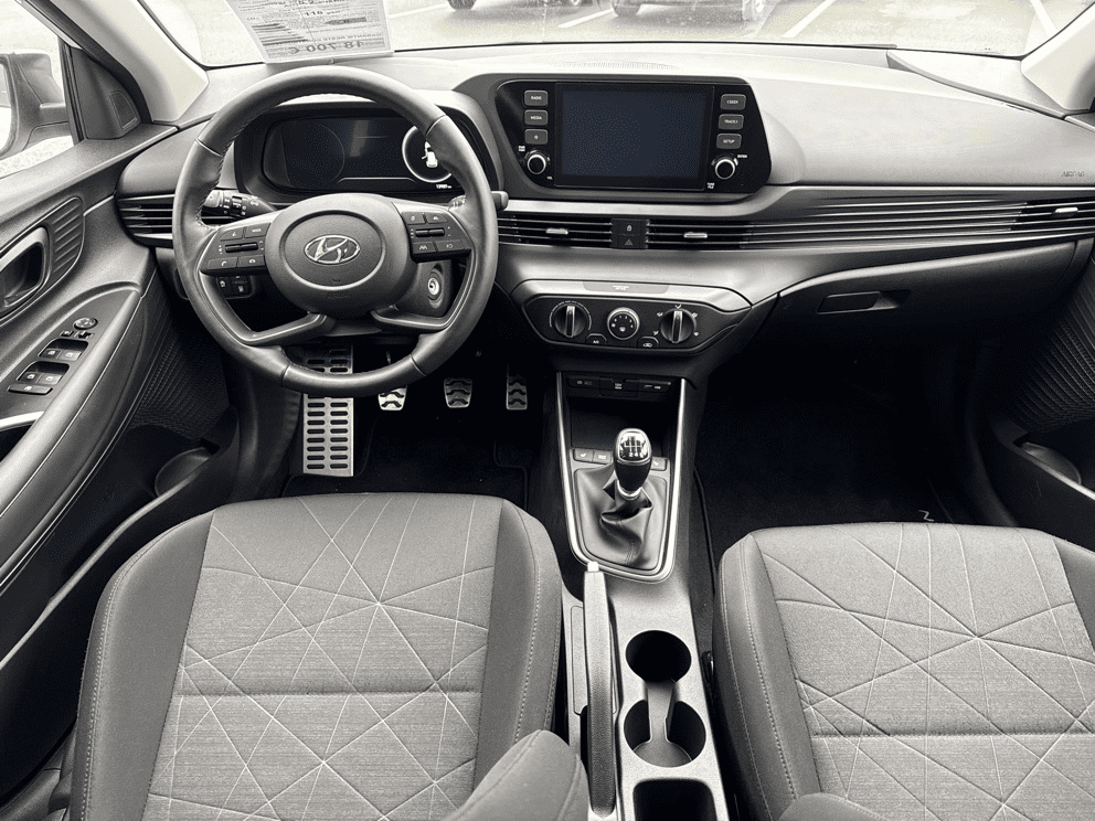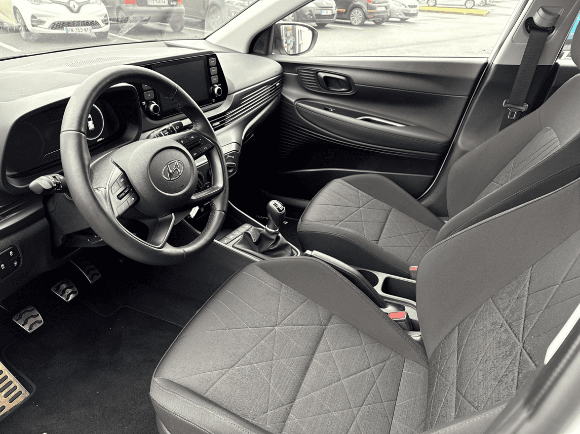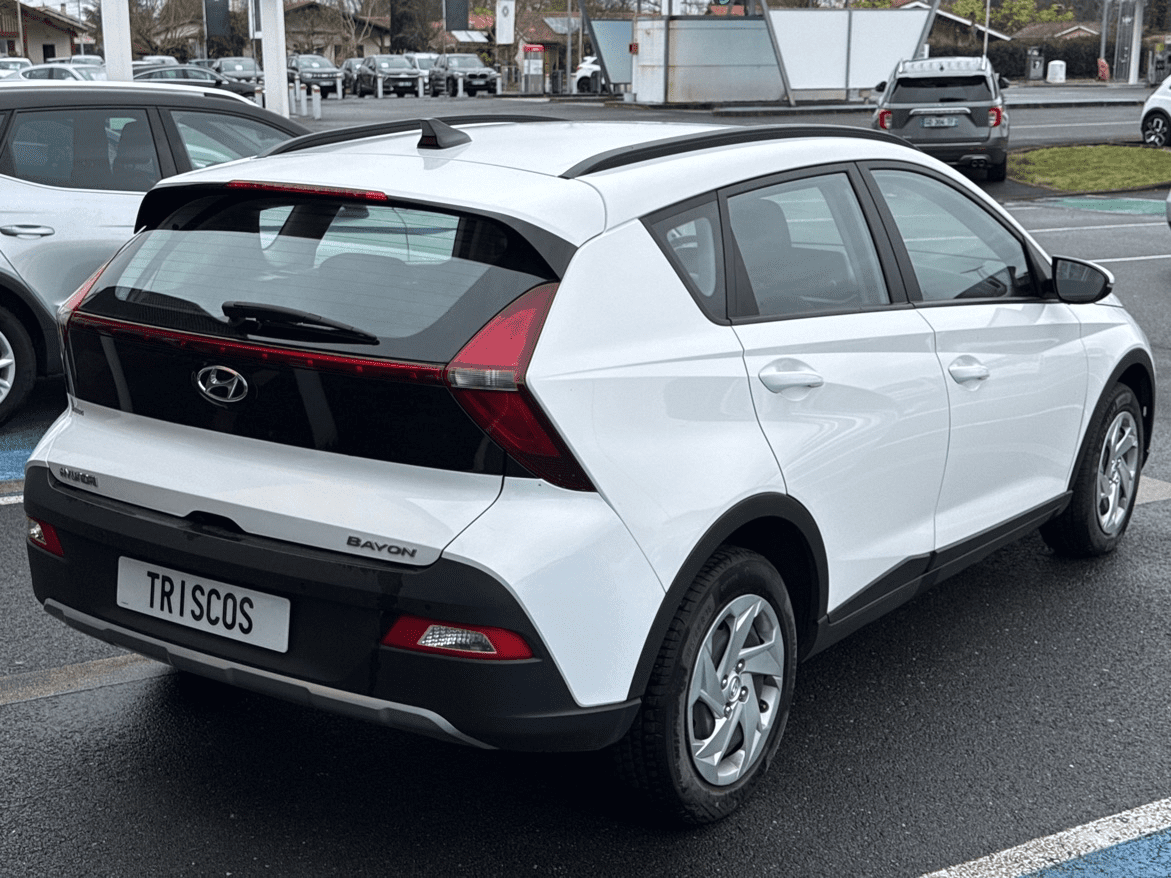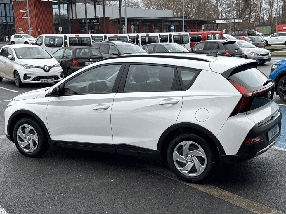 HYUNDAI BAYON 1.0 T-GDI 100CH HYBRID 48V INITIA - Atlas White - 5 Haut parleurs - ABS - AFIL - Aide au démarrage en côte - Aide au freinage d'urgence - Airbag conducteur - Airbag passager déconnectable - Airbags latéraux avant - Airbags rideaux AV et AR - Antidémarrage électronique - Antipatinage - Appel d'Urgence Localisé - Appui-tête conducteur réglable hauteur - Appui-tête passager réglable en hauteur - Arrêt et redémarrage auto. du moteur - Assistance de maintien de trajectoire - Bacs de portes avant - Banquette 60/40 - Banquette AR rabattable - Banquette arrière 3 places - Boite à gants fermée - Boucliers AV et AR couleur caisse - Capteur de luminosité - Ceintures avant ajustables en hauteur - Clim manuelle - Commandes du système audio au volant - Compte tours - Contrôle de freinage en courbe - Détecteur de sous-gonflage - EBD - Enjoliveurs - ESP - Essuie-glace arrière - Feux de jour à LED - Feux de position à LED - Feux de route automatiques - Filtre à particules - Filtre à Pollen - Fixations Isofix aux places arrières - Fonction MP3 - Freinage automatique d'urgence - Guidage pour manoeuvre de stationnement - Kit mains-libres Bluetooth - Lampe de coffre - Limiteur de vitesse - Lunette AR dégivrante - Lunette arrière - Miroir de courtoisie conducteur éclairé - Miroir de courtoisie passager éclairé - Ordinateur de bord - Ouverture des vitres séquentielle - Phares halogènes - Plancher de coffre mobile - Pommeau de levier vitesse en cuir - Porte-gobelets avant - Prise 12V - Prise auxiliaire de connexion audio - Prise USB - Radio - Radio numérique DAB - Reconnaissance panneaux de signalisation - Régulateur de vitesse - Répétiteurs de clignotant dans rétro ext - Rétroviseur intérieur jour/nuit - Rétroviseurs dégivrants - Rétroviseurs électriques - Siège conducteur réglable en hauteur - Système d'assistance à la descente - Système de détection de somnolence - Système de prévention des écarts - Tablette cache bagages - Température extérieure - Tissu Noir - Verrouillage auto. des portes en roulant - Verrouillage centralisé à distance - Verrouillage centralisé des portes - Vitres arrière électriques - Vitres avant électriques - Vitres teintées - Volant cuir - Volant multifonction - Volant réglable en profondeur et hauteur