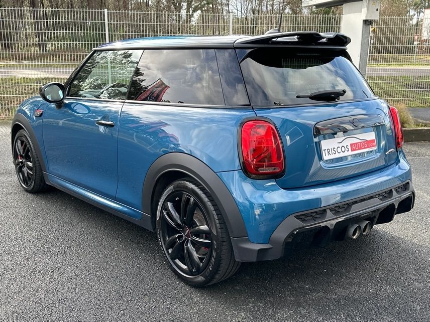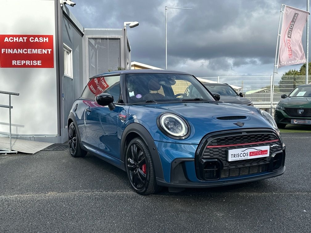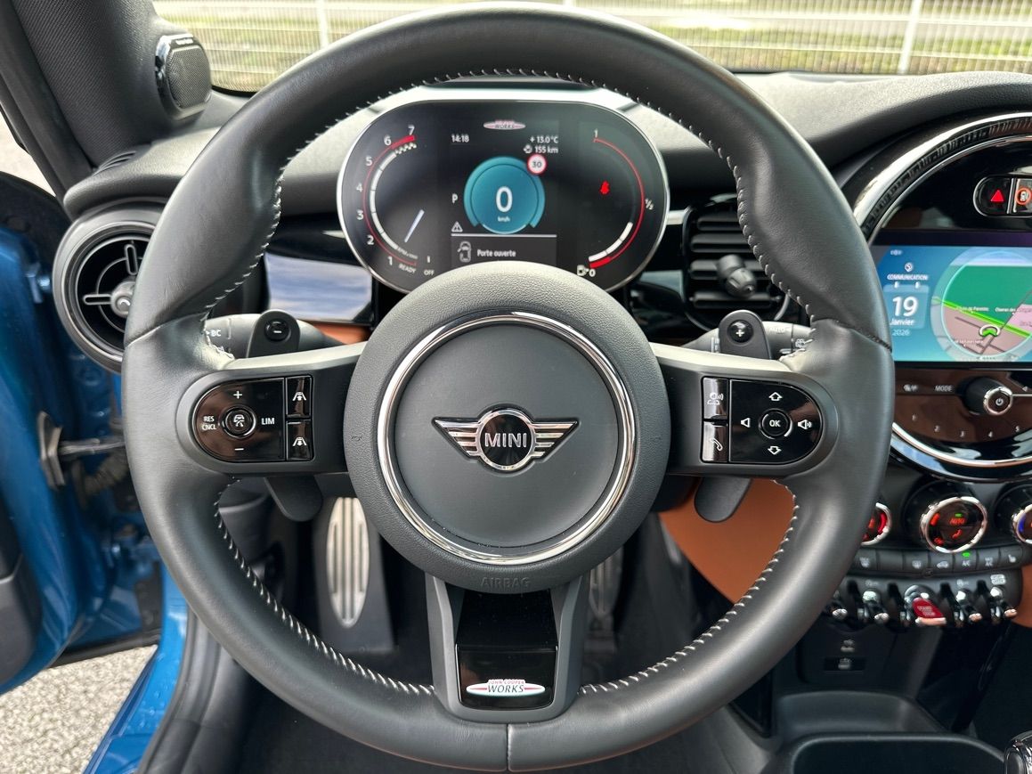 MINI MINI JCW 231CH EDITION PREMIUM PLUS BVA8 - Coques de rétroviseurs noires - Cuir Chester Malt Brown - Pack Connected Navigation - Toit Multitone Bleu - 12 Haut parleurs - ABS - Accoudoir central AV avec rangement - Affichage tête haute - AFIL - Aide au freinage d'urgence - Airbag conducteur - Airbag passager - Airbags latéraux avant - Airbags rideaux AV et AR - Antidémarrage électronique - Antipatinage - Appel d'Urgence Localisé - Appui-tête conducteur réglable hauteur - Appui-tête passager réglable en hauteur - Arrêt et redémarrage auto. du moteur - Bacs de portes avant - Banquette 2 places - Banquette 60/40 - Banquette AR rabattable - Becquet arrière - Blocage électronique du différentiel - Boucliers AV et AR couleur caisse - Buses de lave-glace chauffantes - Caméra de recul - Capteur de luminosité - Capteur de pluie - Clim automatique bi-zones - Commande du comportement dynamique - Commandes du système audio au volant - Compte tours - Contrôle de freinage en courbe - Contrôle de Traction - Contrôle élect. de la pression des pneus - Démarrage sans clé - EBD - Echappement à double sortie - Eclairage au sol - Eclairage d'ambiance - Ecran multifonction couleur - Ecran tactile - ESP - Essuie-glace arrière - Feux arrière à LED - Feux de freinage d'urgence - Feux de jour à LED - Feux de position à LED - Filtre à Pollen - Fixation Isofix siège passager avant - Fixations Isofix aux places arrières - Follow me home - Fonction MP3 - Freinage automatique d'urgence - GPS Cartographique - Indicateur de limitation de vitesse - Interface Media - Jantes Alu - Kit mains-libres Bluetooth - Lampe de coffre - Lampes de lecture à l'avant - Limiteur de vitesse - Lunette AR dégivrante - Melting Silver III - Miroir de courtoisie conducteur éclairé - Miroir de courtoisie passager éclairé - Ordinateur de bord - Ouverture des vitres séquentielle - Palettes changement vitesses au volant - Pédalier sport - Phares avant LED - Poches d'aumonières - Porte-gobelets avant - Préparation Isofix - Prise 12V - Prise auxiliaire de connexion audio - Prise iPod - Prise USB - Radar de stationnement AR - Radar de stationnement AV - Radio - Radio numérique DAB - Reconnaissance panneaux de signalisation - Régulateur de vitesse adaptatif - Rétroviseur intérieur électrochrome - Rétroviseurs dégivrants - Rétroviseurs électriques - Rétroviseurs ext. indexés à la marche AR - Rétroviseurs extérieurs à mémoire - Rétroviseurs extérieurs électrochromes - Rétroviseurs rabattables électriquement - Services connectés - Siège conducteur avec réglage lombaire - Siège conducteur chauffant - Siège conducteur réglable en hauteur - Siège passager avec réglage lombaire - Siège passager chauffant - Siège passager réglable en hauteur - Sièges avant sport - Sortie d'échappement chromée - Stations de webradio - Système d'accès sans clé - Système d'assistance au stationnement - Système de localisation par satellite - Système de mesure de place disponible - Système de prévention des collisions - Système de sécurité post-collisions - Système d'éclairage intelligent - Système facilitant l'accès aux places AR - Système Hi-Fi Surround - Température extérieure - Tissu/Dinamica Carbon Black JCW - TMC - Toit ouvrant électrique panoramique - Velum rang 1 - Velum rang 2 - Verrouillage auto. des portes en roulant - Verrouillage centralisé à distance - Verrouillage centralisé des portes - Vitres avant électriques - Vitres teintées - Volant cuir - Volant multifonction - Volant réglable en profondeur et hauteur - Volant sport