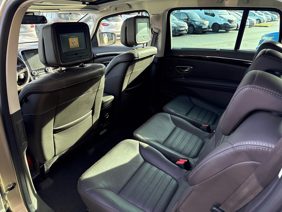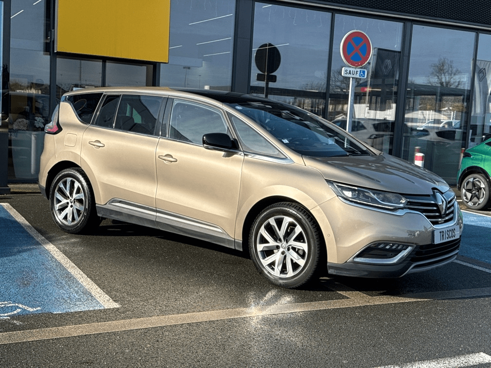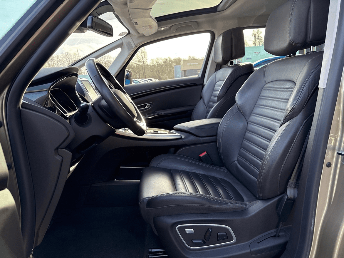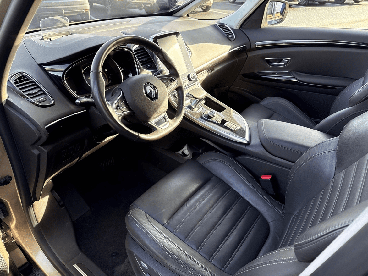 RENAULT ESPACE V 1.6 TCE 200CH ENERGY INTENS EDC - Beige Dune - Cuir Riviera brun foncé (Pack Cuir) - Pack 7 Places - Pack Famille - 3 sièges individuels en rang 2 - 8 Haut parleurs - ABS - Accoudoir central AV avec rangement - Affichage tête haute - AFIL - Aide au démarrage en côte - Aide au freinage d'urgence - Airbag conducteur - Airbag passager - Airbag passager déconnectable - Airbags latéraux avant - Airbags rideaux - Arrêt et redémarrage auto. du moteur - Bacs de portes arrière - Bacs de portes avant - Boite à gants éclairée et réfrigérable - Caméra de recul - Capteur de luminosité - Capteur de pluie - Ceinture de vitrage chromée - Clim automatique bi-zones - Coffre assisté électriquement - Compte tours - Contrôle de Traction Intelligent - Contrôle élect. de la pression des pneus - Démarrage sans clé - Direction assistée - EBD - Eclairage d'ambiance - Ecran multifonction couleur - Ecran tactile - ESP - Feux de jour à LED - Feux de route automatiques - Frein stationnement électrique - Freinage automatique d'urgence - GPS Cartographique - Jantes Alu - Kit de dépannage pneumatique - Kit mains-libres Bluetooth - Lampes de lecture à l'avant - Lecteur carte SD - Limiteur de vitesse - Lunette arrière surteintée - Miroir de courtoisie conducteur éclairé - Miroir de courtoisie passager éclairé - Ordinateur de bord - Ouverture des vitres séquentielle - Ouverture du coffre mains-libres - Pare-brise thermique - Phares avant LED - Poignées ton carrosserie - Pommeau de levier vitesse en cuir - Prise 12V - Prise Jack - Prise USB - Radar de distance - Radar de stationnement AR - Radar de stationnement AV - Radio - Reconnaissance panneaux de signalisation - Régulateur de vitesse - Régulateur de vitesse adaptatif - Répétiteurs de clignotant dans rétro ext - Rétroviseur intérieur électrochrome - Rétroviseurs électriques - Rétroviseurs électriques dégivrants - Rétroviseurs extérieurs à mémoire - Rétroviseurs rabattables électriquement - Services connectés - Siège conducteur à mémoire - Siège conducteur avec réglage lombaire - Siège conducteur chauffant - Siège conducteur électrique - Siège conducteur massant - Siège conducteur réglable en hauteur - Siège passager à réglages électriques - Siège passager avec réglage lombaire - Siège passager chauffant - Siège passager réglable en hauteur - Sièges arrière escamotables (2/3 rang) - Sièges avant massants - Sièges rang 2 rabattables à plat - Syst. récupération énergie décélération - Système d'accès et de démarrage sans clé - Système d'accès sans clé - Système d'assistance au stationnement - Système de contrôle des angles morts - Système de mesure de place disponible - Système de récupération énergie freinage - Tablette cache bagages - TMC - Toit Zénith - Velum rang 1 - Verrouillage auto. des portes en roulant - Verrouillage centralisé à distance - Vitres arrière électriques - Vitres arrière surteintées - Vitres avant électriques - Vitres latérales fixes sur rang 3 - Volant cuir - Volant multifonction - Volant réglable en hauteur - Volant réglable en profondeur et hauteur
